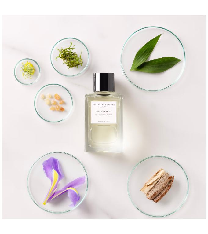 La sensualité s'épanouit doucement, portée aux nues par le sillage de Velvet Iris : un écrin tissé par les notes lactées du santal, la chaleur du labdanum, et les vibrations contemporaines de SaffianoTM, une molécule exclusive d'IFF conjuguant la puissance du cuir à la douceur du daim.