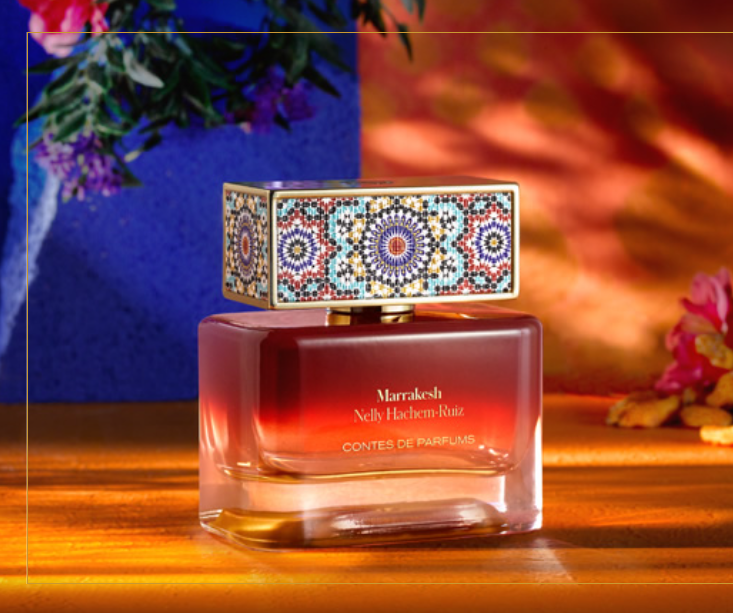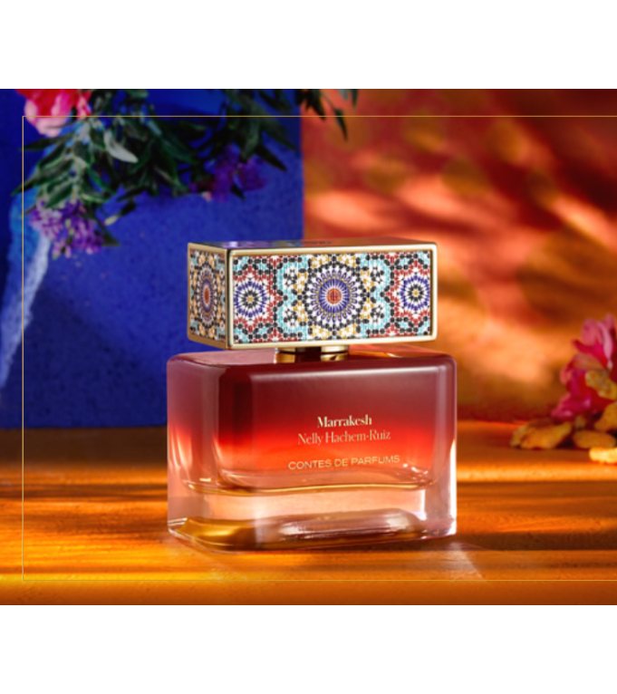 Nelly Hachem-Ruiz a capturé les sensations captivantes qu'elle a ressenties en se promenant dans les ruelles du souk et en s'émerveillant des nectars parfumés qui remplissaient l'air de Marrakech.