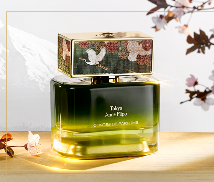 Un parfum délicat qui nous transporte au Japon pour revivre un Hanami –  contemplation des cerisiers en fleurs – à travers les différents  coins perdus de Tokyo dont Anne s’inspire.