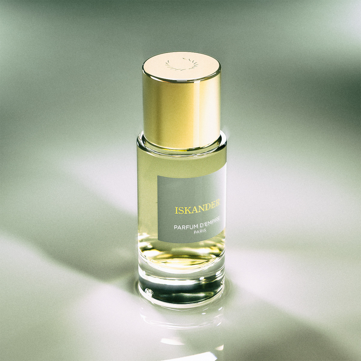 Ce chypre frais s’ouvre sur un cédrat pétillant et acidulé associé à la mandarine et au pamplemousse. La fine fraîcheur du néroli contraste avec la vigueur aromatique de l’estragon et de la coriandre. Mousse de chêne, ambre et musc ancrent l’envolée dans un sillage sensuel et fougueux. ISKANDER, une eau lumineuse, éternelle comme les Olympiades…